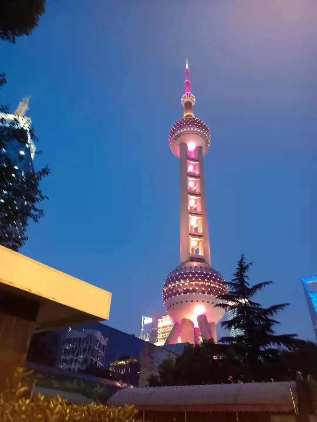 正午的烈日直挺挺地铺在大巴顶白色铁皮上,似乎再凑近点儿就能听到兹拉兹拉的焦灼。大风力冷气穿梭在女孩们的发丝间,因为窗外的白光睫毛下面投出一簇簇好看的阴影。“千年中国看北京,百年中国看上海”。将近一小时车程里,来自苏大历史系的导游为我们讲解着建筑、风土、人情。CBD首站就是位于浦东新区陆家嘴的东方明珠广播电视塔,亚洲第一高塔,那个好多人以为的最接近天空的地方近在眼前。