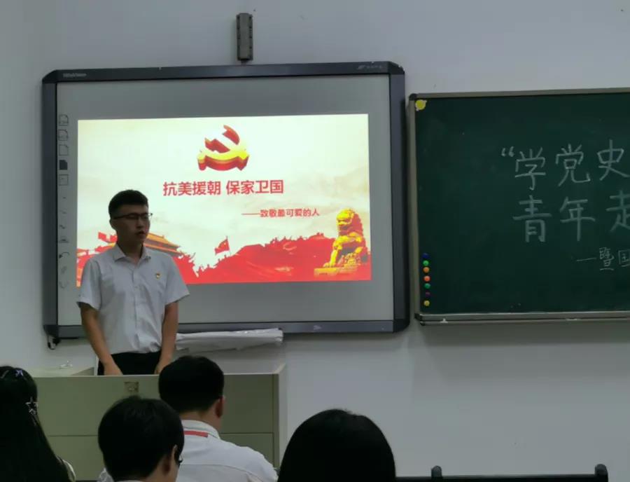 第三位宣讲人赵岳虎,主要从抗美援朝的历史背景,历史过程,伟大意义和伟大精神四节介绍了保家卫国的这段历史。以魏巍《谁是最可爱的人》结尾向志愿军英雄们致敬!向无数用鲜血换回今日和平的先烈们致敬!