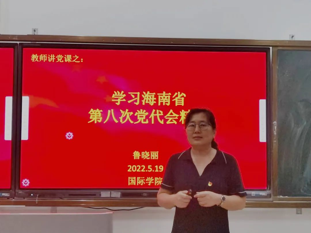 大会第五项:鲁晓丽老师为大家带来了2022年党员和入党积极分子培训的第一课,共同学习了海南省第八次党代会精神。中国共产党海南省第八次代表大会,是在全省上下深入学习贯彻习近平总书记考察海南重要讲话精神、全岛封关运作准备工作加快推进的关键时刻,召开的一次十分重要的会议。我们要深入贯彻落实习近平新时代中国特色社会主义思想,牢记习近平总书记关于海南工作的殷切嘱托,解放思想、开拓创新,团结奋斗、攻坚克难,把海南自贸港打造成展示中国风范的靓丽名片。