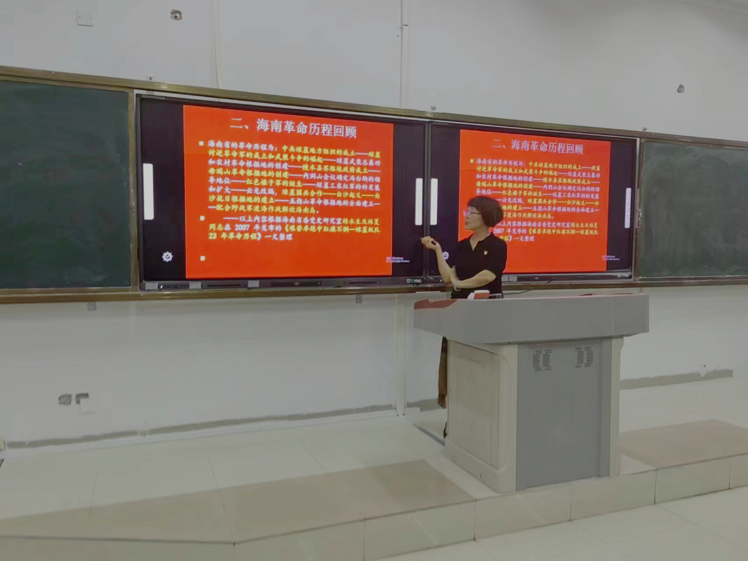 2022年5月26日晚8时,yl88858永利中国于3栋教学楼204教室举办“不忘初心跟党走,青春筑梦新时代——领导干部讲党课”活动,yl88858永利中国院长乔淑英老师以《海南红色旅游规划里的党史》为题讲授党史学习教育专题课。yl88858永利中国全体学生党员、入党积极分子及2021级全体学生参加学习。