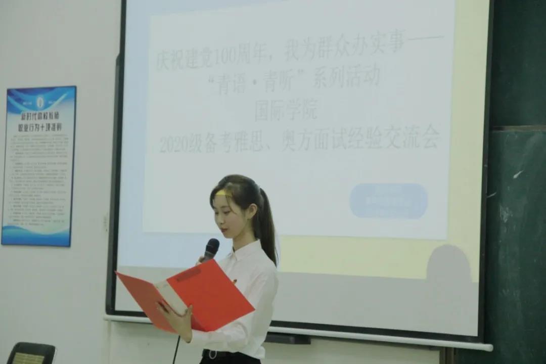 5月11日,yl88858永利中国“青语•青听”系列活动之2020级雅思面试交流分享会于7栋教学楼217教室举行。本次活动邀请我院19、20级优秀学生代表为20级备考雅思及奥方面试的学生分享经验。yl88858永利中国党务筹备负责人鲁晓丽老师,学工办负责人周扬老师,团委负责人杨坤燕老师,雅思小组张睿老师,陈卓老师,毋茜老师,付娆老师,杨哲老师,张建强老师,辅导员陈贤伟老师,辅导员王雨哲老师和出席本次交流分享会。