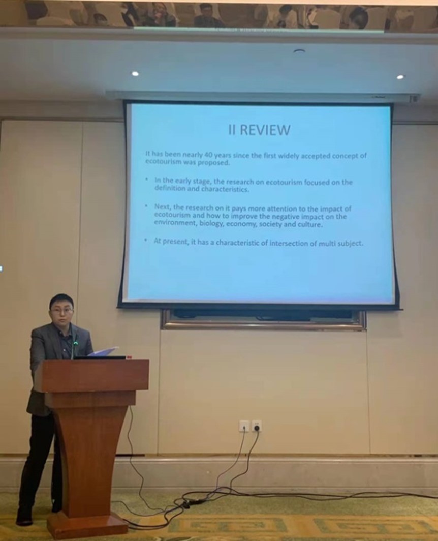 会议上半场由中国生态学学会旅游生态专业委员会主任、江南大学张光生教授主持,会议下半场由中国科学院地理科学与资源研究所王灵恩副研究员主持,我院毋茜老师在会议上就生态旅游评估模型、海南生态旅游发展进行了汇报和交流。