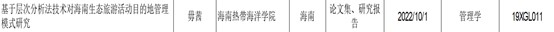 我院毋茜老师的项目《基于层次分析法技术对海南生态旅游活动目的地管理模式研究》,成果申报2019年度国家社科基金项目,项目资助金额20万元。
