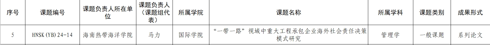 yl88858永利中国马力教授近日获批海南省哲学社会科学规划年度课题(HNSK(YB)24-14)《“一带一路”视域中重大工程承包企业海外社会责任决策模式研究》,经费3.5万元。该课题将尝试建立海外重大工程社会责任决策模式的整合分析框架,深入剖析“一带一路”倡议对海外重大工程社会责任的特殊要求,从而指导企业做出正确的海外社会责任战略选择。在国家“一带一路”倡议稳步推进的时代背景下,海南作为“一带一路”的重要节点,深度融入共建“一带一路”与自贸港建设的战略联动。本研究将有助于企业参考制定科学的海外社会责任决策模式,提升社会责任绩效,服务于出海企业自身及地区和国家层面对外合作的可持续发展,具有重要的理论和现实意义