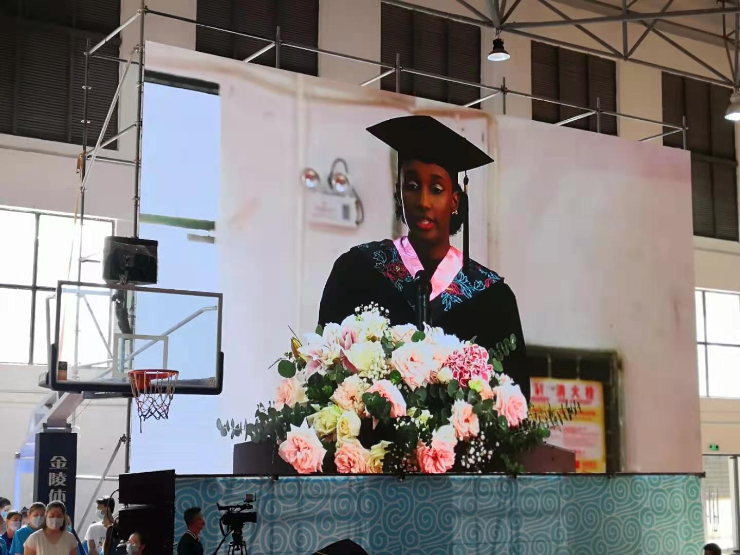 佛得角学生伊莉莎代表优秀毕业生在2020届毕业典礼上发言