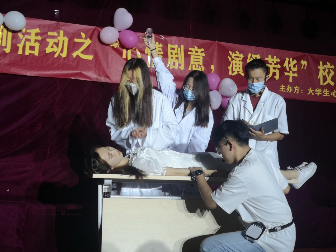 为加强大学生心理健康教育,宣传心理健康工作,由我校大学生心理教育中心主办,校团委、学生工作部(处)协办,于2021年5月28日晚七点在教学楼三栋3103教室成功举办“心情剧意,演绎芳华”校园心理剧比赛(决赛)。