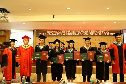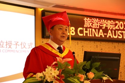 我校国际交流与合作处处长魏晶、教务处副处长郑力乔、旅游学院负责人及中奥项目师生代表参加毕业典礼。