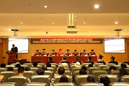 奥地利IMC应用技术大学国际项目部总监Jens对第二届中奥班学生四年的努力学习给予充分肯定,并对我校的支持表示衷心的感谢。他希望同学们能够从这四年的学习中获得有益的东西,在毕业后继续努力,不断地汲取新知识,不断地发展与完善自身。中奥项目教师代表Stefan发言,勉励学生再接再厉。杨晨同学作为优秀毕业生代表发言,表达了对母校的感谢和对未来的憧憬。