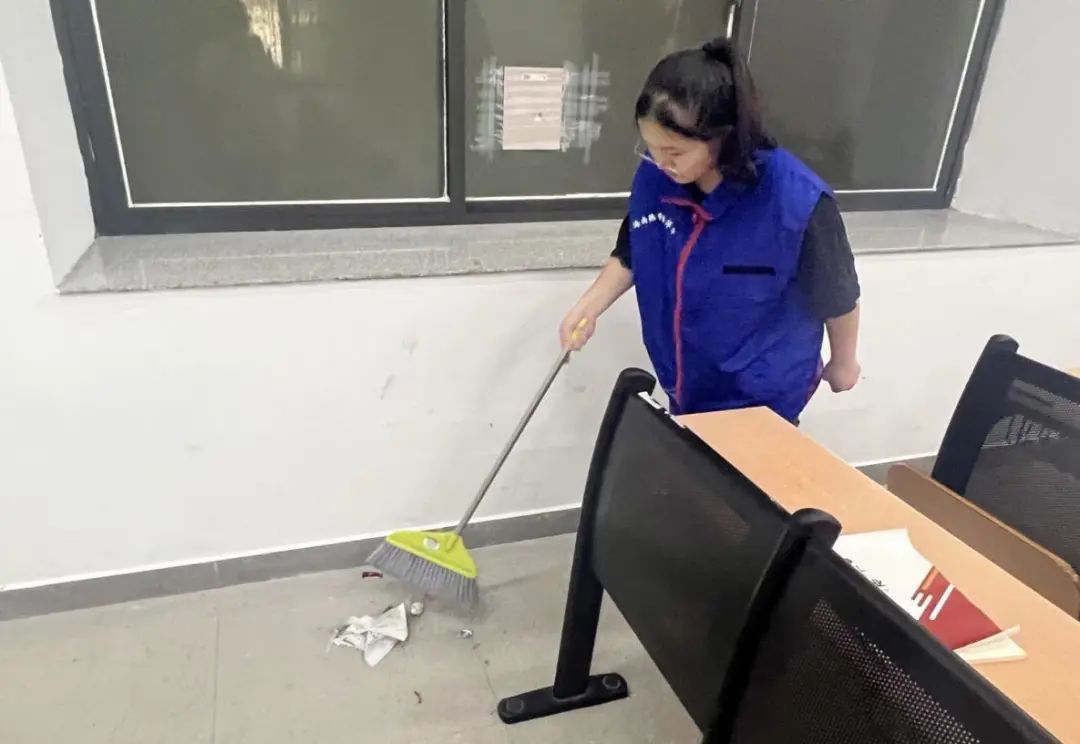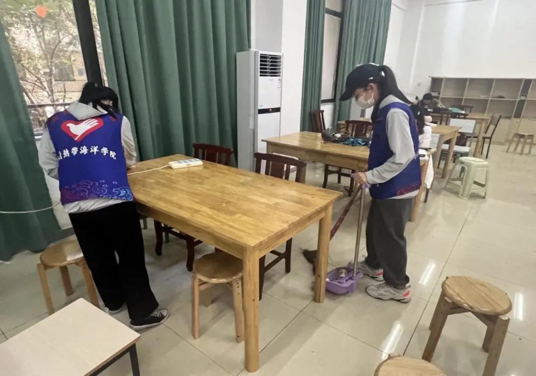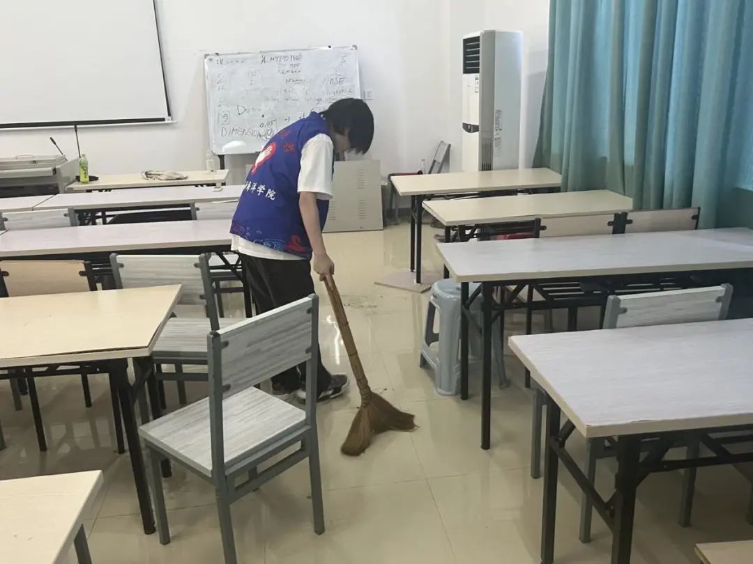 可没有困难能够阻碍他们。一次次的弯腰,一遍遍的往返,志愿者动作敏捷而轻盈,仿佛不知疲倦般地坚持着。在他们无声的配合中,教室逐渐变得整洁干净,焕然一新。